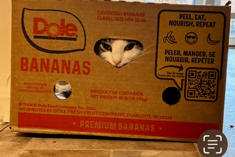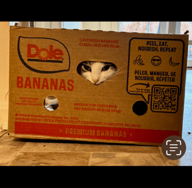This is a picture of our own cat named Bodie by my son. My wife had just gotten home from Costco with several boxes loaded with groceries. As she emptied each box and set it aside each one aside for recycling, we got a good laugh as we watched her. She had to inspect each box, and as she did so spent a great amount of time playing in each box. We both got a great laugh watching her that day!